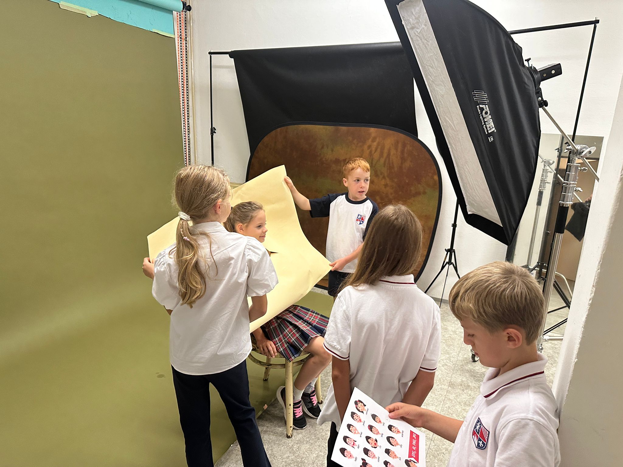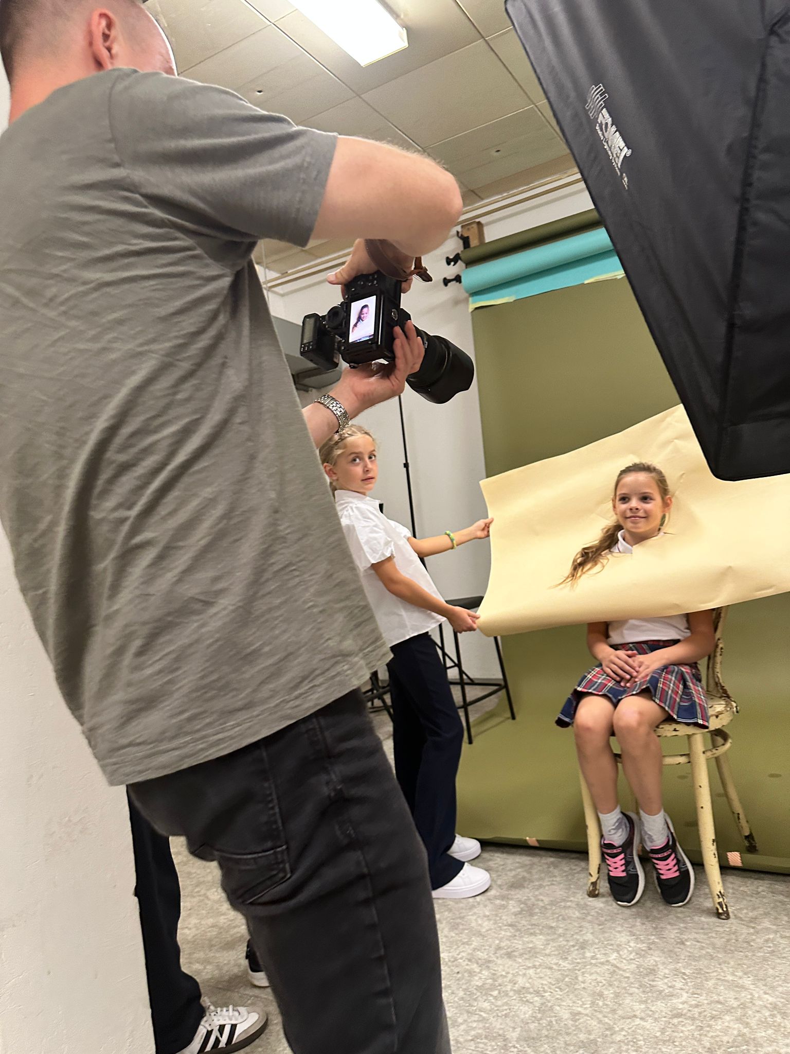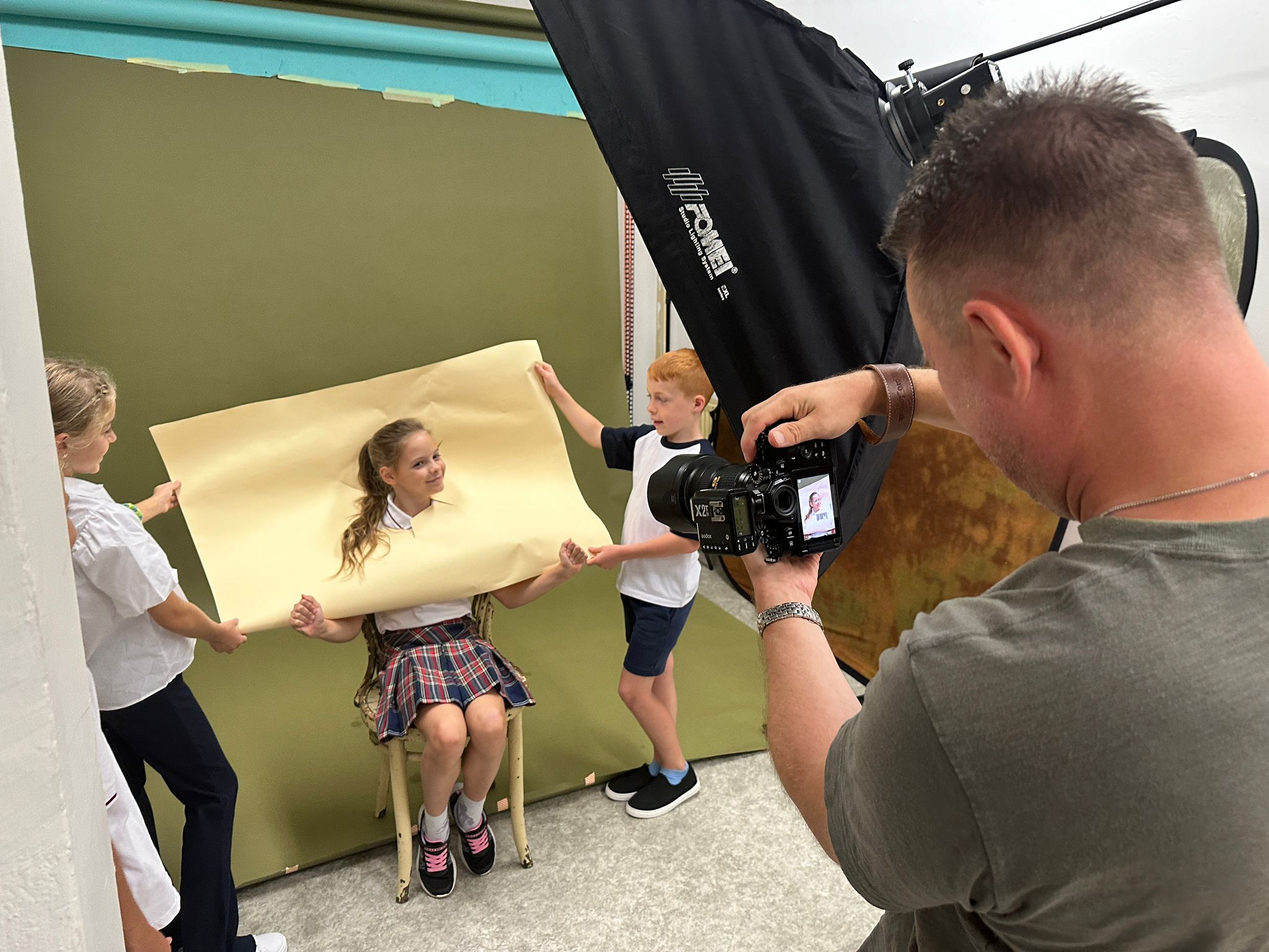 The session didn’t end there. Using his creative skills, Mr. Slava masterfully photoshopped the individual portraits into a single, cohesive group photo, which you can see as the title image of this blog. The final product captures not only their faces but also their emotions, creating a meaningful memento for each student to take home. Scroll below to see behind-the-scenes photos of the creative process!