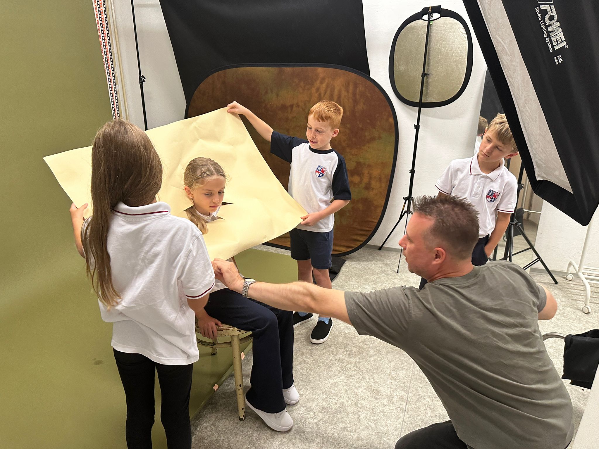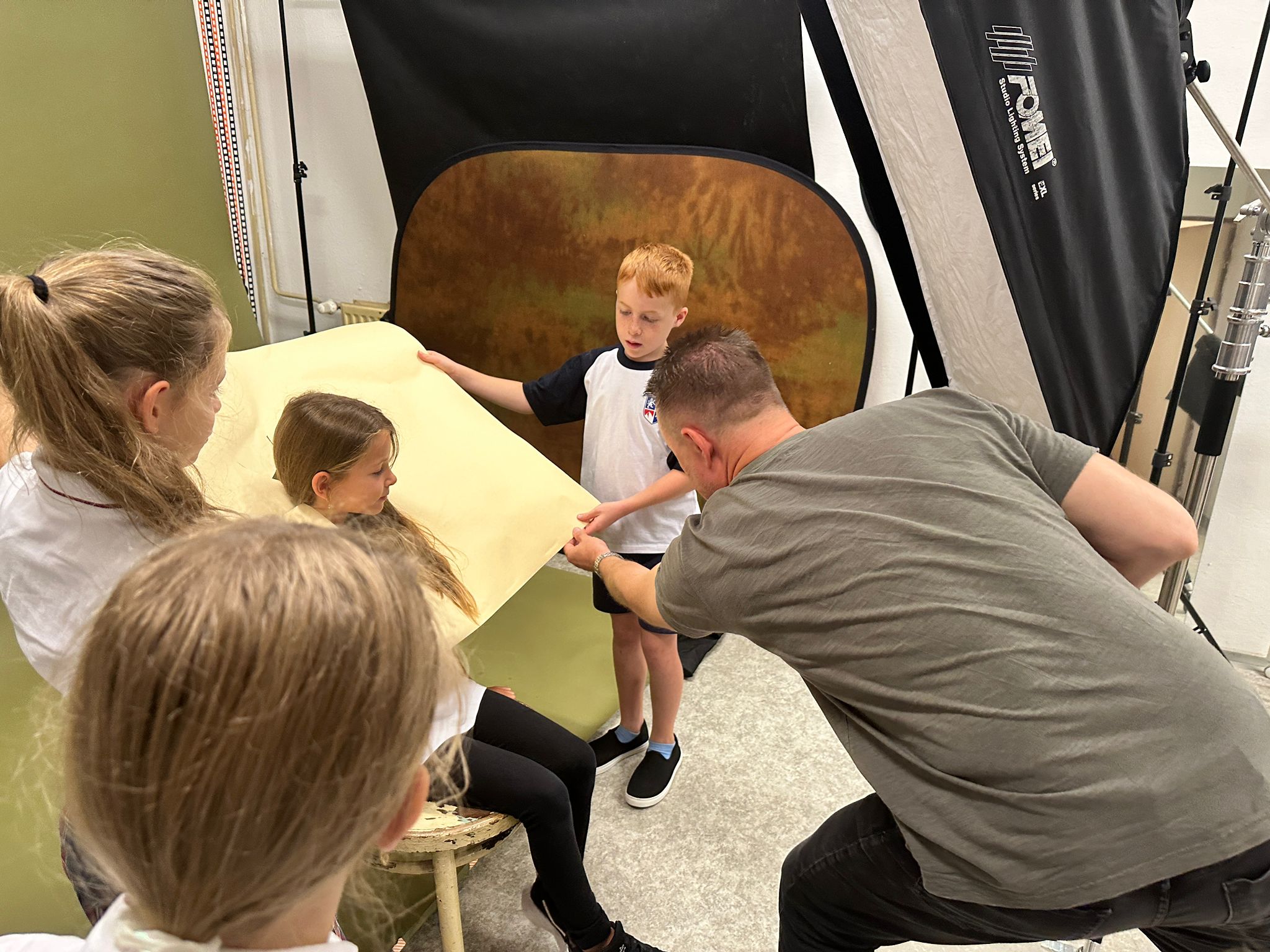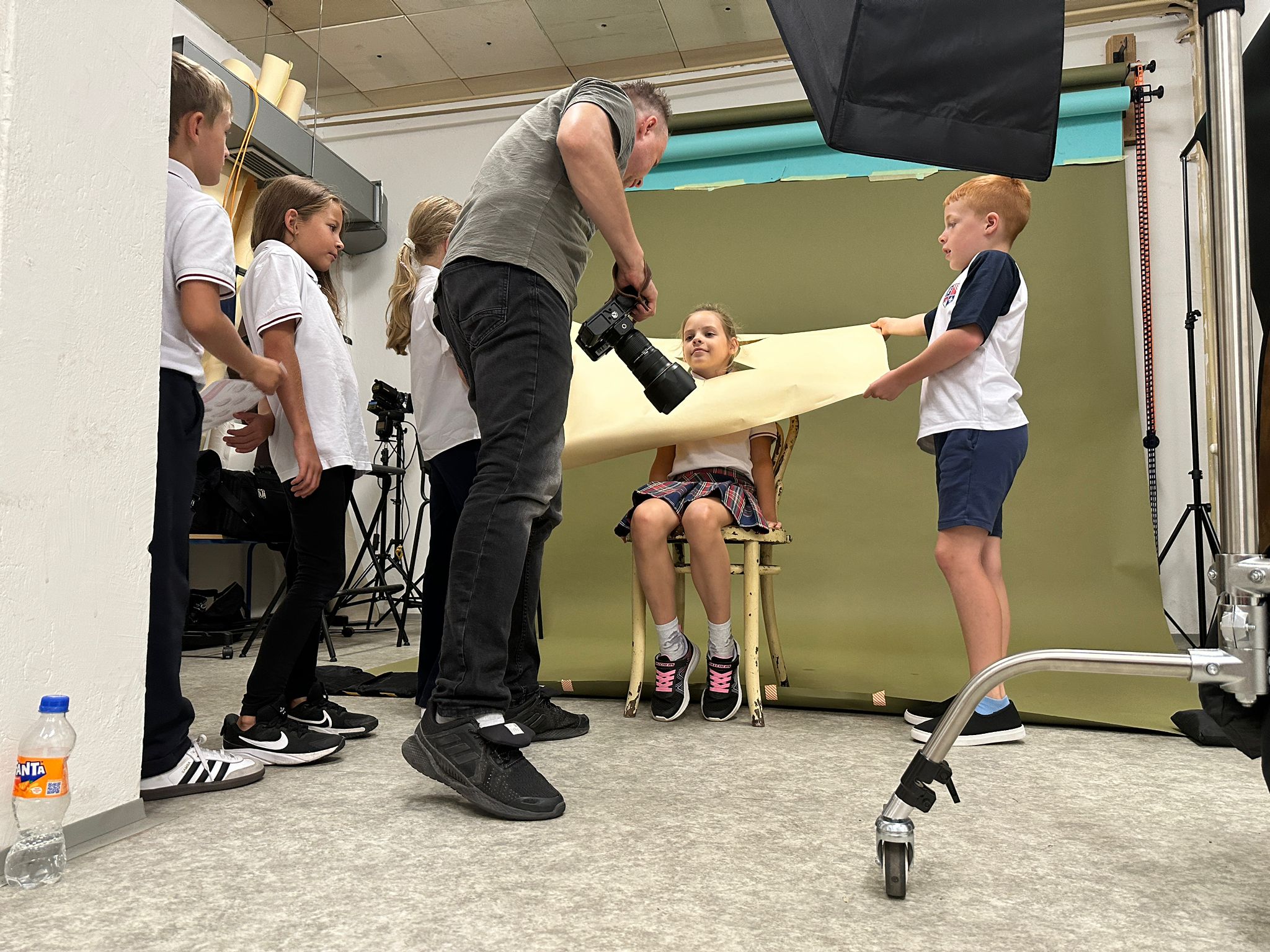 The session didn’t end there. Using his creative skills, Mr. Slava masterfully photoshopped the individual portraits into a single, cohesive group photo, which you can see as the title image of this blog. The final product captures not only their faces but also their emotions, creating a meaningful memento for each student to take home. Scroll below to see behind-the-scenes photos of the creative process!