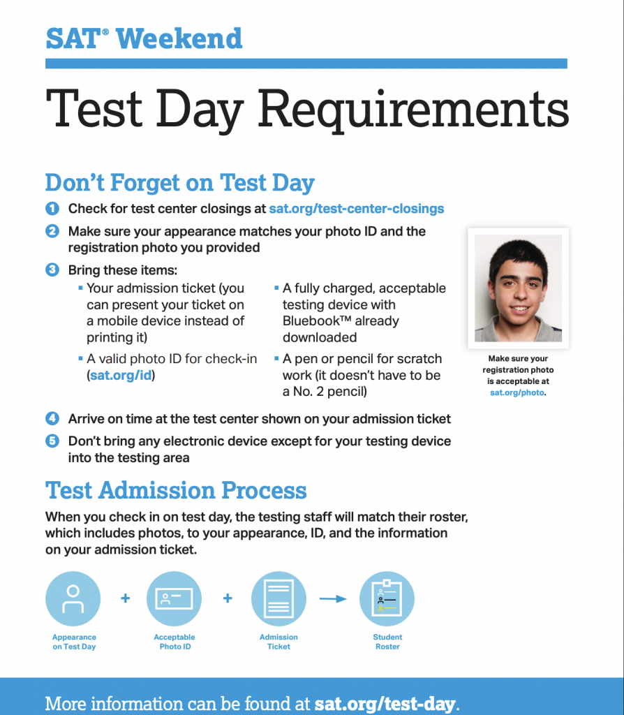 - Your up-to-date admission ticket from the Bluebook app. Bringing a printed ticket is preferred, and you can access the ticket after completing exam setup (available starting 5 days before the test).