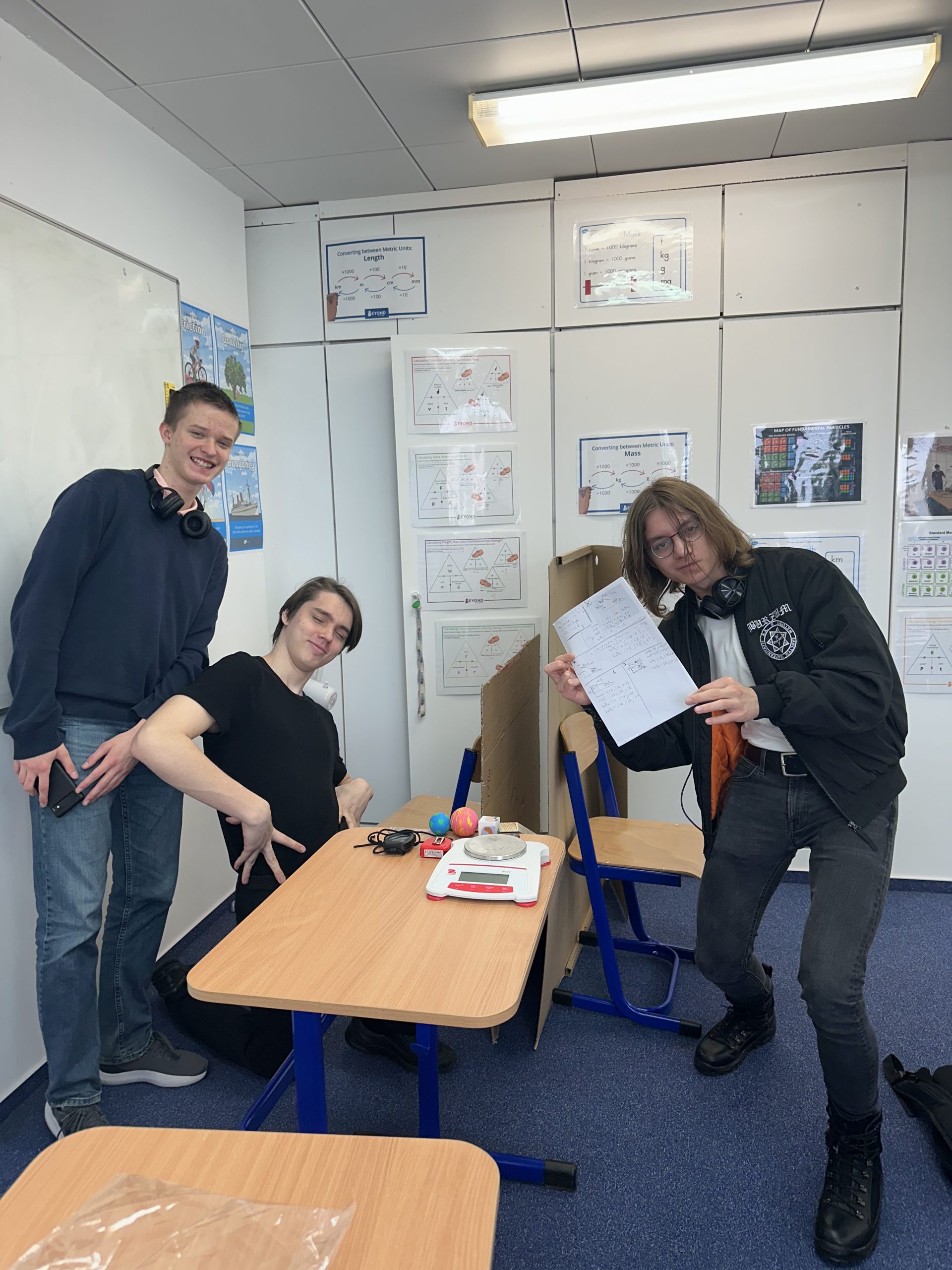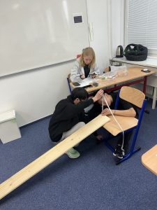 The experiment offered more than just data—it offered insight. As the objects slid down the ramps, the students observed how potential energy converted into kinetic energy, and how friction influenced that conversion. With each trial, they not only collected values but built a clearer picture of how energy is never lost, only transformed. This was a perfect moment to realize how the abstract equations they’ve studied in class are reflected in the real world, where every slope and surface tells a story about energy.