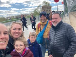 One of the highlights was spotting Nela, a Year 3 student, and her family along the trail. Their cheerful presence provided a significant boost to my spirits. As I made my way into the old town, I was greeted by my family and coworkers braving the freezing temperatures to cheer me on. It was a heartwarming reminder of the wonderful community I am part of.