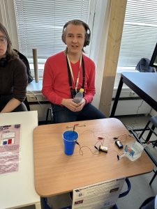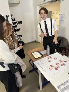 Imre amazed visitors with a robotic arm project that not only demonstrated mechanical control and precision but also served as the foundation for a wave generator model—a beautiful example of interdisciplinary thinking between physics and engineering. Sviat walked us through a fascinating model of nuclear fission and chain reactions using uranium-235, showing how a complex process can be clearly visualized and explained with passion and clarity.