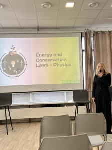 Ester delivered a compelling and timely presentation on energy conservation, transformation, and consumption. Her work touched on the importance of sustainability and the transition to renewable energy sources, a subject that speaks directly to the concerns of our generation and the future. Her clear explanation and confident delivery showed not only understanding but a genuine sense of purpose.