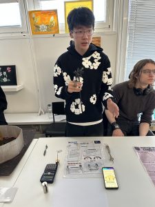 Yan impressed the audience with his in-depth understanding of pulleys and forces, presenting real-world applications and simulations that demonstrated the mechanics behind everyday systems. Lukas, bridging computer science and physics, showed us his code-based simulations on parabolic motion and inclined plane experiments, comparing how friction varies depending on material surfaces—a perfect blend of theory, data, and digital modeling.