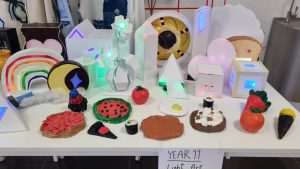 Anastasiia and Randy presented a project completed by Y11, Design for All. In advance, Y11 students asked early years and Y1 students to draw anything that comes to their mind and would like to see it in reality. Then Y11 students took those sketches and created the drawings into different products using different materials and methods.