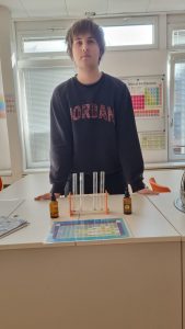 In the Chemistry section, Maksym, Mykhailo, Rado, and Jake participated. Maksym presented a project Qualitative reactions of potassium iodide. Mykhailo demonstrated the evaporation of iodine by heating it.