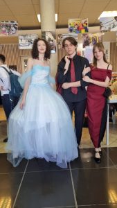 Three students: Alexandra, Anna and Sviatoslav, took part in the fashion show. They demonstrated clothes sewn in design and art lessons by Y 10 students.