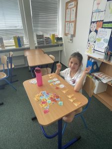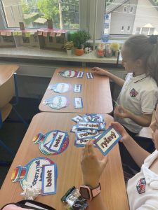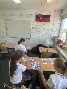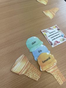 In our Slovak language lessons, we love to learn through play—because the best way for children to remember something is to experience it. To explore parts of speech, our students recently became ice cream vendors. They had to sort piles of “ice cream scoops” into cones based on a given task. The twist? The colors were mixed and didn’t represent specific parts of speech, so they had to focus on the words themselves, not just appearances. It was a fun and engaging challenge that made them think critically.