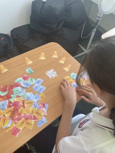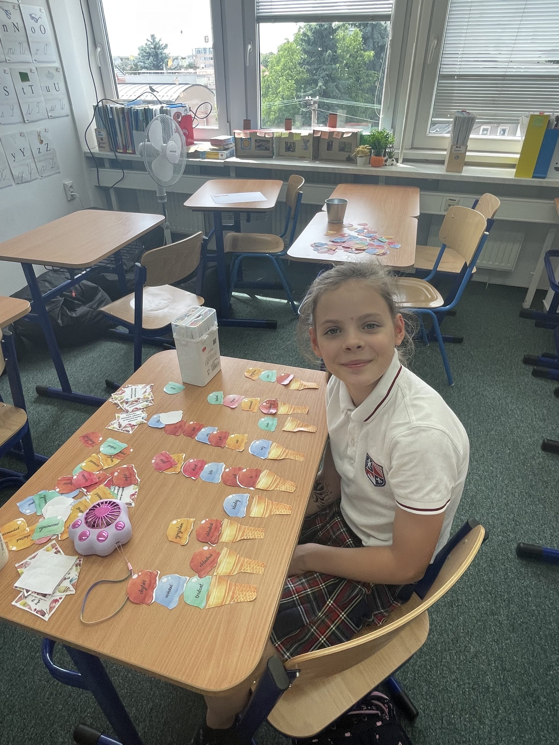 In our Slovak language lessons, we love to learn through play—because the best way for children to remember something is to experience it. To explore parts of speech, our students recently became ice cream vendors. They had to sort piles of “ice cream scoops” into cones based on a given task. The twist? The colors were mixed and didn’t represent specific parts of speech, so they had to focus on the words themselves, not just appearances. It was a fun and engaging challenge that made them think critically.