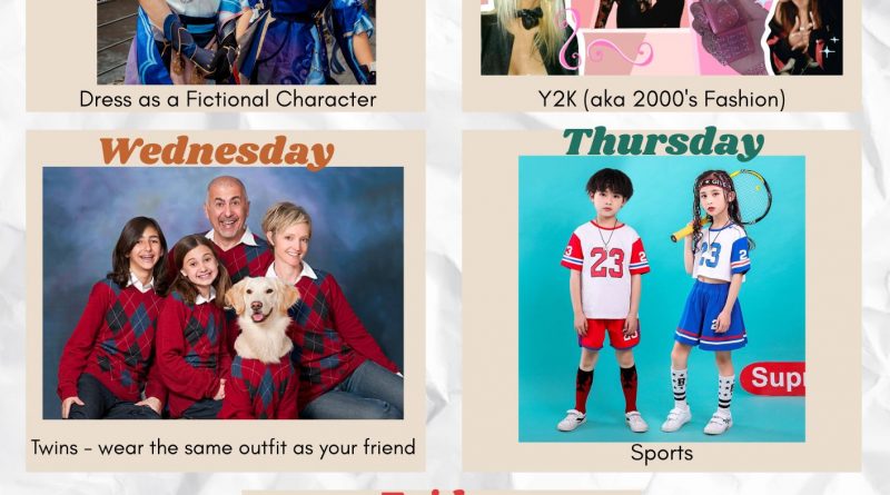 The Student Council is announcing the themes for the upcoming Spirit Week: