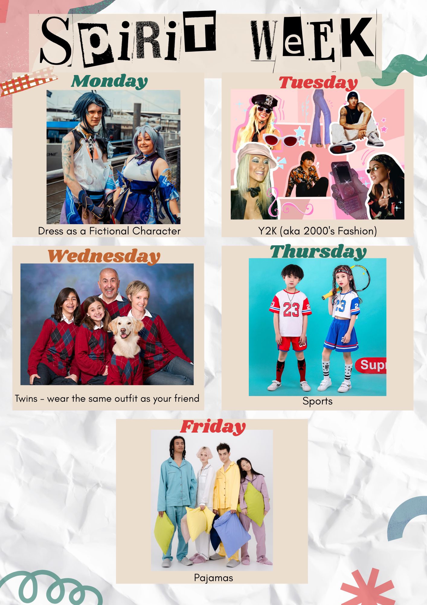 The Student Council is announcing the themes for the upcoming Spirit Week: