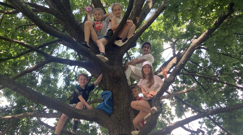 Once we arrived, the park quickly became a hub of laughter and joy. Students climbed, ran, rested, and played games together, taking turns and including one another with kindness and care. And yes—though we usually keep both feet on the ground, we couldn’t resist climbing a big, beautiful tree to snap a playful class photo (a little mischief makes a memory, after all!).