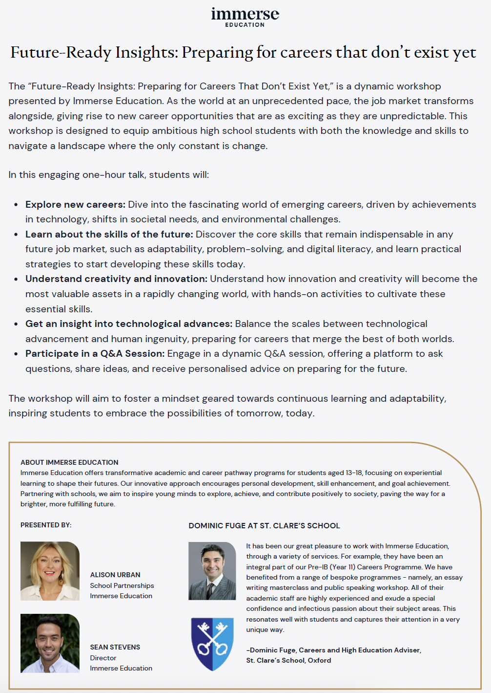 Who: Year 11, 12, 13 (+ parents are welcome) – Note: It is mandatory for Year 11-13 students to join this workshop.