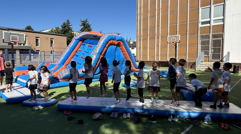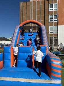 The back play area was transformed into an exciting adventure zone, filled with giant inflatable mats and a bounce slide. The children had an amazing time climbing, sliding, jumping, and cheering each other on.