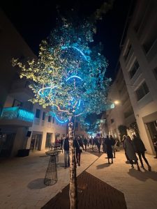 Saturday night drew especially large crowds, with the energy continuing well into Sunday. Cafés stayed open late, musicians played in the squares, and every turn revealed a new burst of light and creativity.