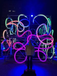 Over the weekend, tens of thousands of people filled the streets. Families, students, and visitors of all ages wandered together through glowing pathways, discovering art in unexpected corners. The city was alive with conversation, laughter, and the quiet hum of excitement.
