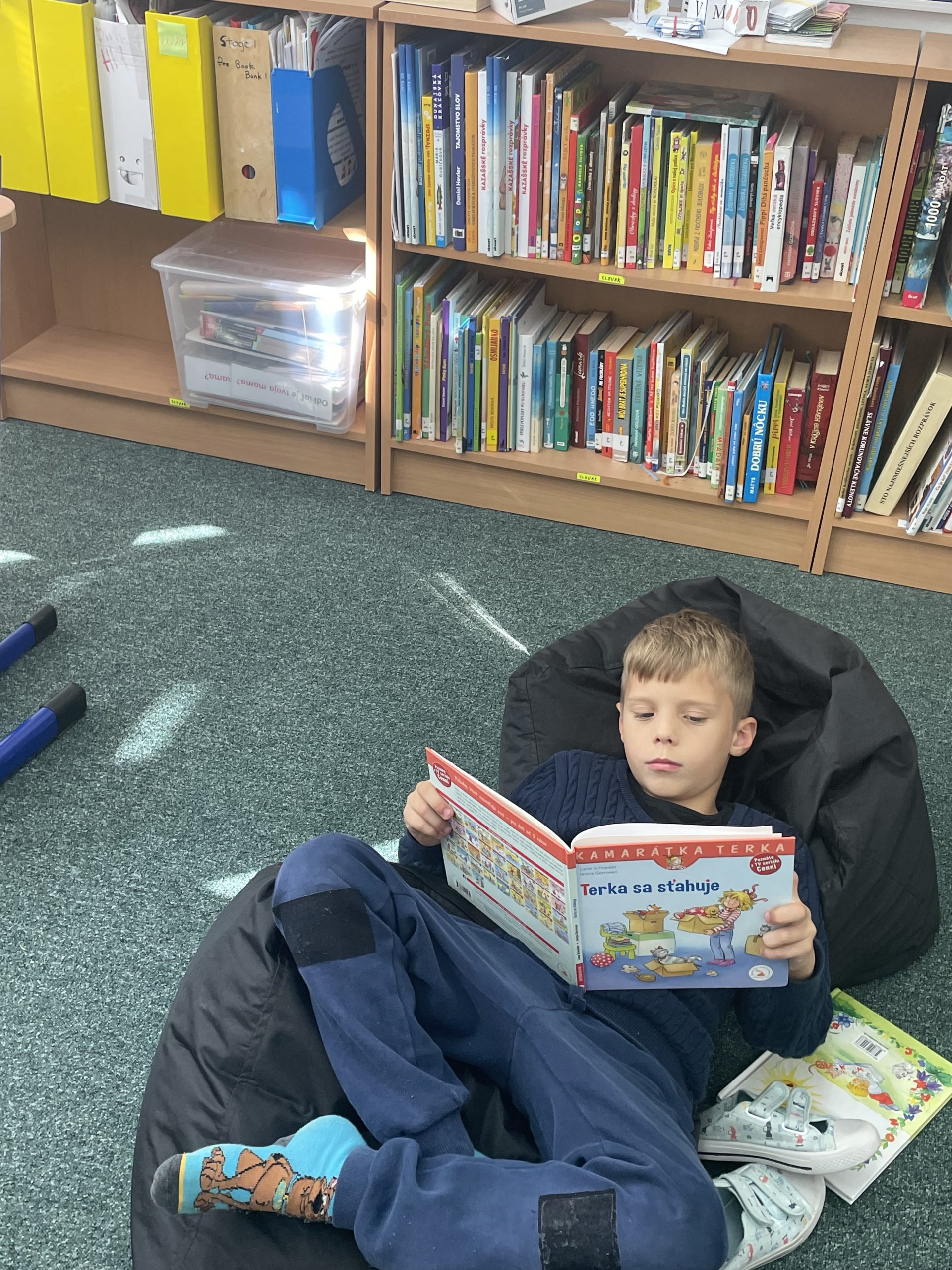 I have been thinking for a long time about how, as a Slovak language teacher, I could help children develop a genuine love for reading—especially in today’s world full of distractions and instant entertainment. Simply telling them that reading is important isn’t enough; they need to feel it. That’s why this year, I decided to start the Cozy Reading Club—a space where reading meets a warm, relaxing atmosphere. Every Tuesday afternoon, our classroom transforms into a cozy little nook: we have comfy beanbags, a cup of tea, and a good book in our hands. The children are discovering that reading doesn’t have to be a school task, but rather a peaceful moment for themselves—a quiet escape into another world. That’s what our Tuesdays look like—calm, tea-scented, and filled with stories.
