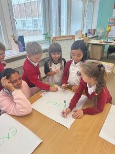 To explore, we tried a fun activity called Chalk Talk. Around the room, we placed big sheets of paper with different feeling words. Then, our little thinkers moved around, drawing pictures and writing their ideas right on the paper. Some chose to express through art, while others shared their thoughts in words and the classroom quickly filled with laughter, colour, and great conversations! ๐ŸŽจ๐Ÿ–๏ธ