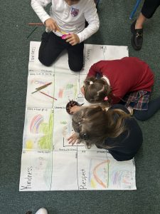 They brainstormed words and actions that represent friendship—such as helping, sharing, listening, and including others—and then brought their ideas to life through amazing drawings and colorful, creative designs.