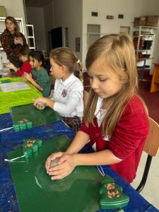 Today, our students had a fun and creative afternoon in the workroom at school, where they made Christmas ornaments out of clay. Everyone was excited to start crafting and used their hands to roll the clay into smooth balls before flattening them to make a perfect surface for cutting.