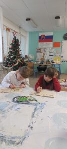 To bring this experience to life, we did a fun little experiment. First, we treated plain paper with coffee to make it look old. Then we sprinkled a bit of salt on it and let it dry for 2โ3 days. Once it was ready, the kids wrote their own special Christmas messages for their families.