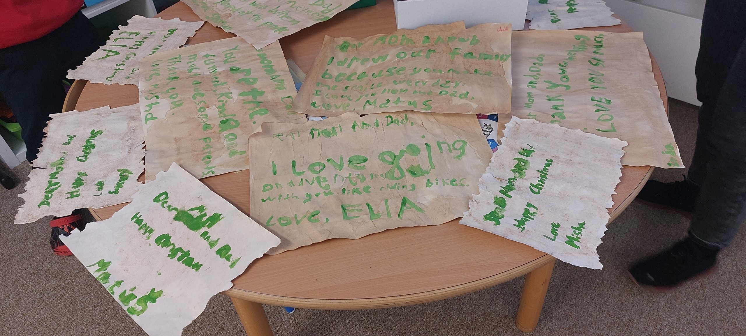 Now, these letters are all set for our school Christmas market! ๐โจ Year 2B worked super hard over the past few days, making sure every letter looked amazing. The kids had a blast seeing their papers turn old, writing heartfelt messages, and just enjoying the whole process.