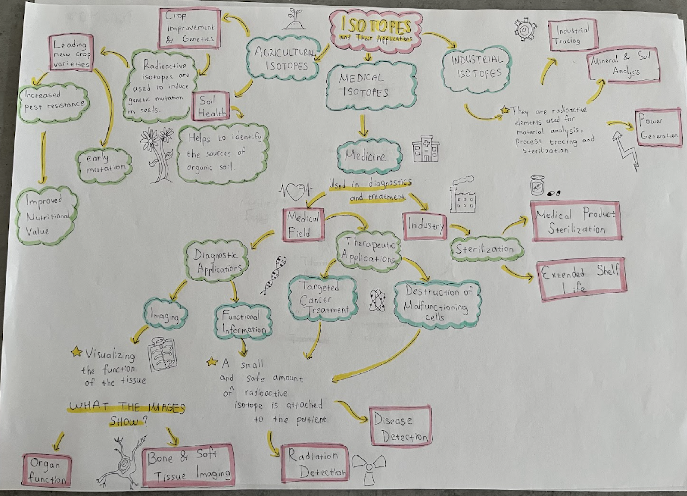 One of the highlights of the year was the students’ research on isotopes. They created detailed mind maps showcasing different applications, which were proudly presented during Open House Day.