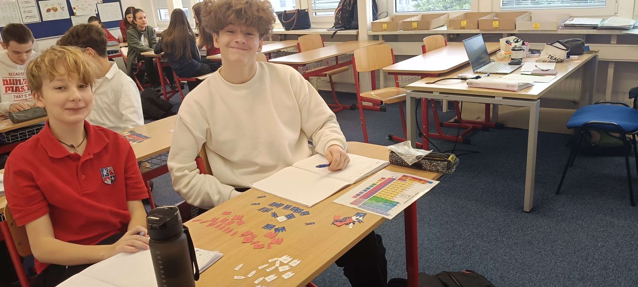 The activity also helped students see the connection between chemistry and simple mathematical thinking, as they balanced positive and negative charges to form neutral compounds. This game is always a great success—students had fun while learning, collaborating, and confidently applying their knowledge at the same time.