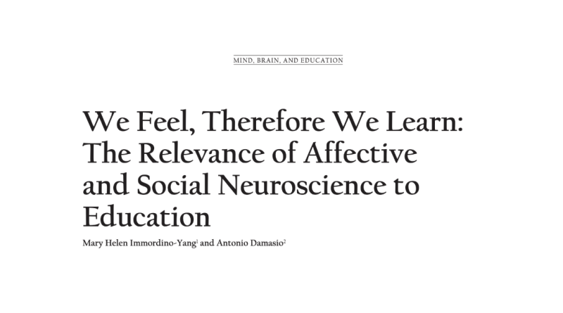 For many years, education has often treated learning as a primarily rational process, one that is focused on information, reasoning, and cognitive skills. However, neuroscience research challenges this assumption. In their article “We Feel, Therefore We Learn: The Relevance of Affective and Social Neuroscience to Education,” Mary Helen Immordino-Yang and Antonio Damasio argue that emotion is not separate from learning but deeply intertwined with it.