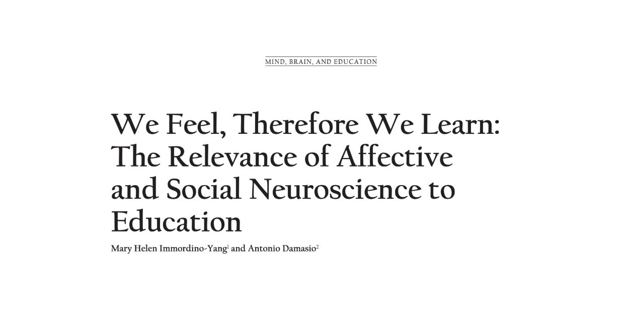 This is one of my favourite research articles, and it has inspired my teaching since I first dived into this field of research 10+ years ago. It is important to remember that learning is both a cognitive and an emotional process. By recognising this, teachers (and parents) can develop better strategies to support the academic development of our students. We feel, therefore we learn.