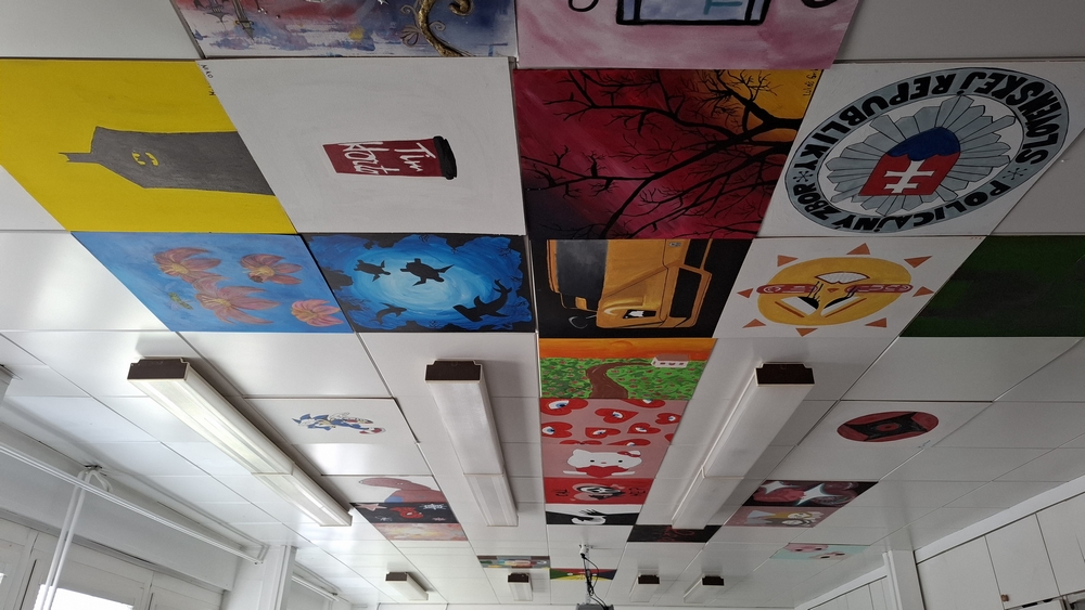 Every year, every class participates in several collaborative projects. The featured image is the art room ceiling, which is an ongoing project, and every year, that year’s year 10 adds new canvases to it during the ceiling painting unit. The 3 black and white fineliner images in this post are a result of an art activity, when each student has a paper, draws on it for a few minutes, and then passes it to the right, until at least 4 people worked on the same paper.