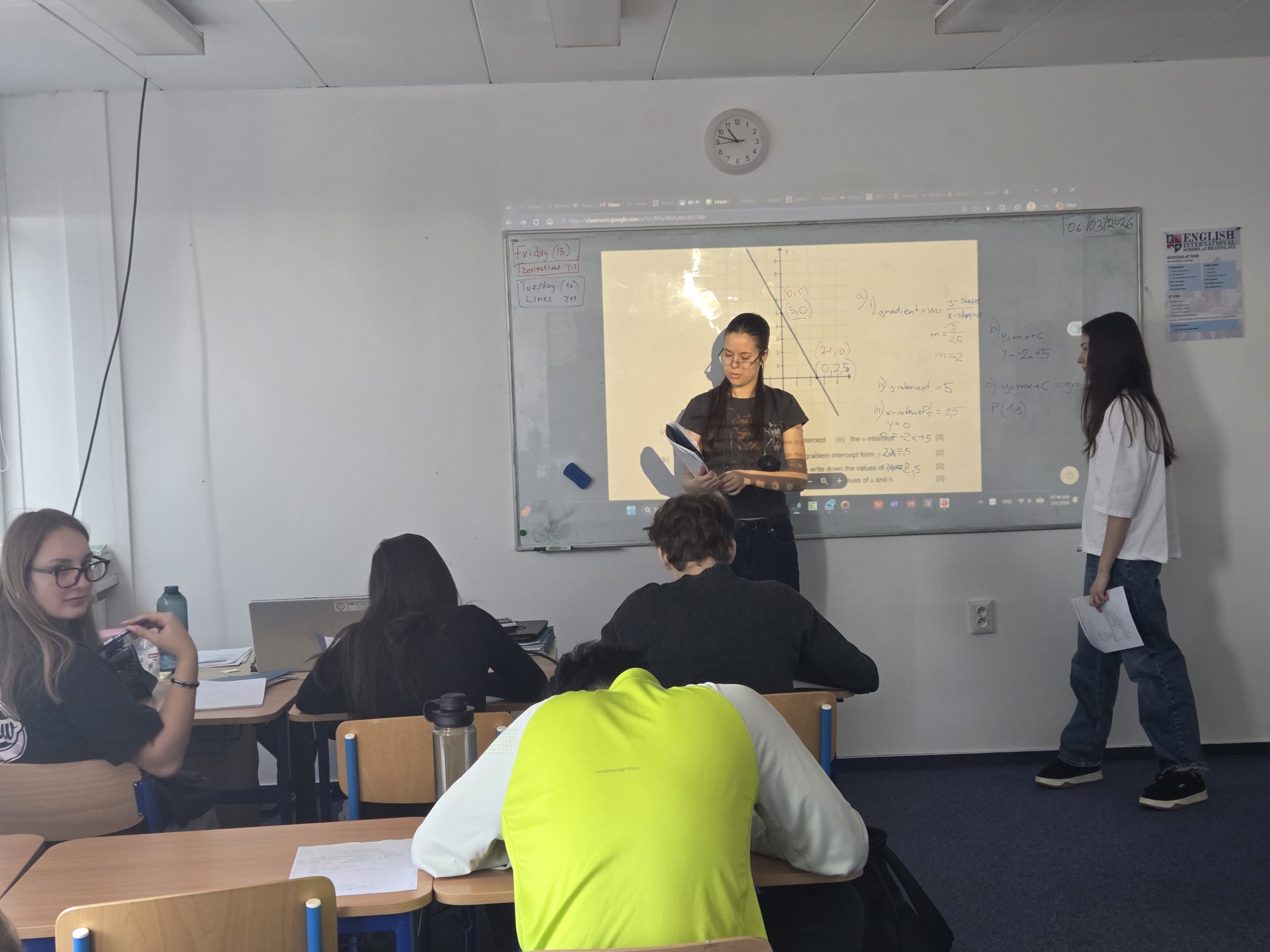 Learning becomes even more meaningful when students support one another, and this was beautifully demonstrated by two Year 11 students, Katarina and Kristina. Showing great initiative and a strong sense of responsibility, they dedicated their time to helping their classmates better understand how to find the equation of a line, a key concept in mathematics.