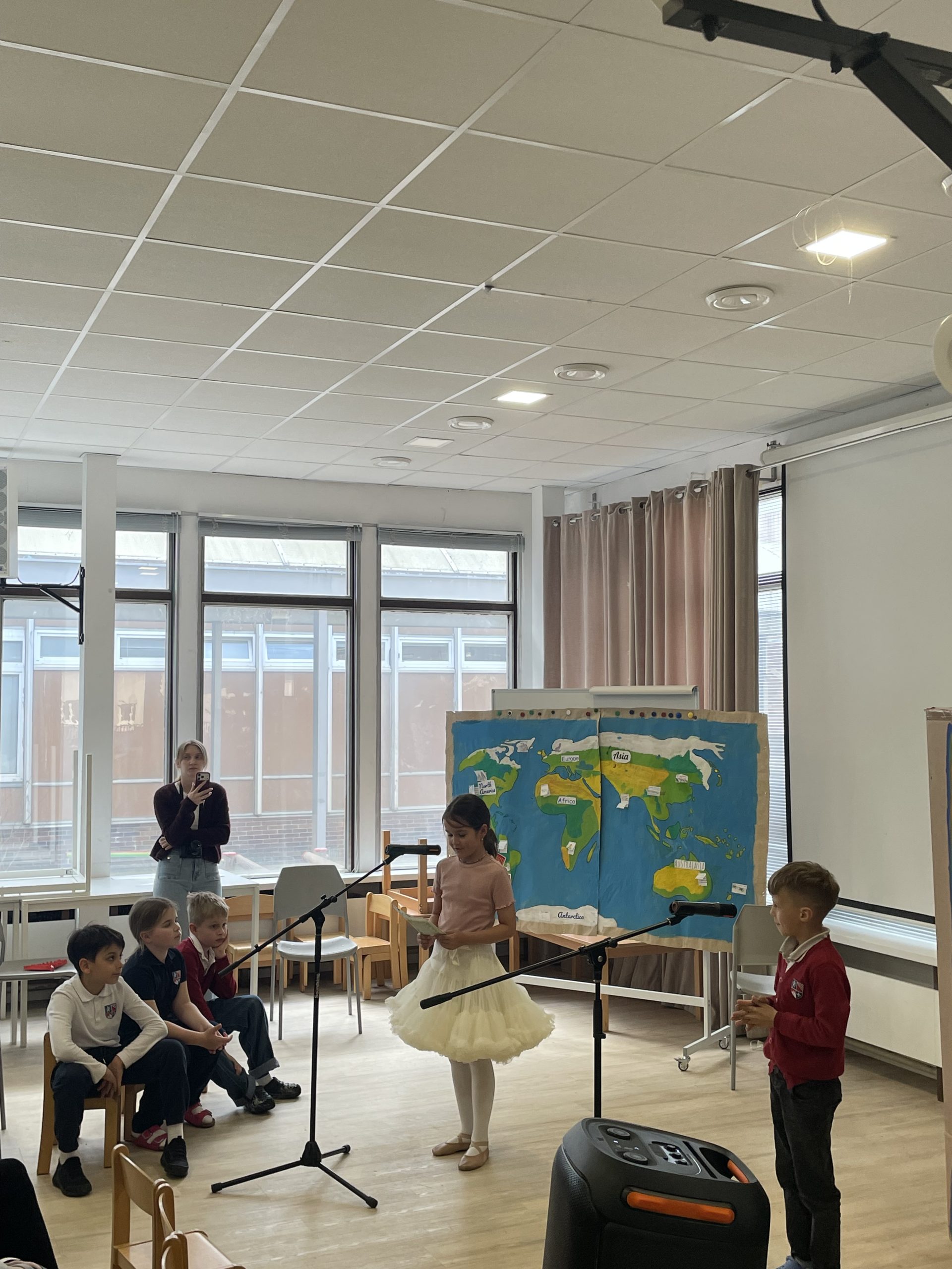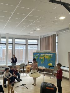 Milena and Sasha presented a poem in Slovak, which is an additional language for them. Their performance highlights the importance of creating a safe and supportive learning environment where students feel encouraged to use a new language actively and authentically. Such opportunities play a significant role in supporting language acquisition and building communicative competence.