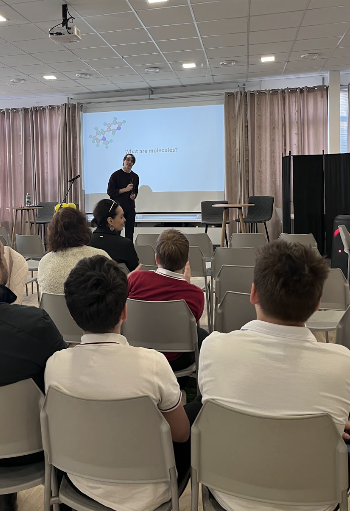 Our Open House presentation session in canteen started with an engaging performance of a bright DP 1 student Sviatoslav who gave visitors a glimpse into what studying chemistry in the Diploma Programme really looks like — and it was far more detailed than many expected!