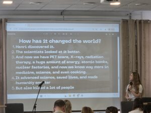 Beyond the tragedies, the presentation explored how radioactivity evolved from a misunderstood “miracle” into a cornerstone of modern medicine and energy.