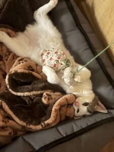 So, you buy a simple toy? Nope! You might not need any of those hyper-expensive toys you get at the pet shop, nor any of those cat houses. What you will actually need for your cat is a carton box or a bag with a blanket, one or two balls that make jingly noises, a thing on a string (can be anything as long as they can draw their claws into it), a stuffed animal that is preferably a mouse or a bird, and a cat scratching tree.
