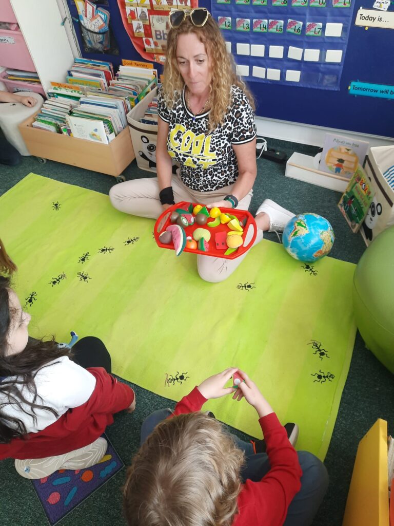 Now that these core skills are becoming more secure, we are moving forward into new and engaging topics. Recently, we began exploring fruits, where students are learning to recognize and name different fruits in Spanish, as well as describe their colors.