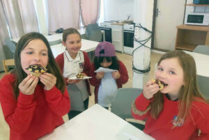 We decided to bake blueberry muffins. Baking is quite a precise activity, so the students had to be careful when measuring all the ingredients. Even cracking an egg turned out to be a small challenge—those tiny bits of shell always try to sneak into the batter!