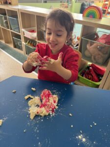 Beyond physical development, messy play encourages curiosity and creativity. Children are free to experiment, make choices, and express themselves without worrying about getting things “right.” This helps build confidence and independence as they explore materials in their own way.